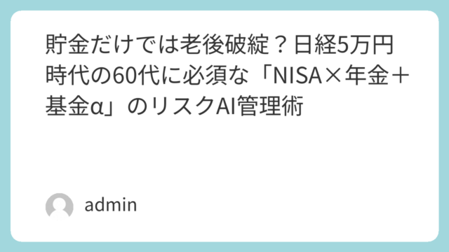 65歳以降の再就職が厳しい現実から逆算し、個人事業主・年金・NISAを組み合わせた収入設計を解説。老後資金2,000万円問題と社会保険料の不安を構造で解決。
