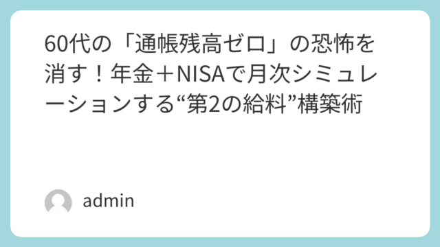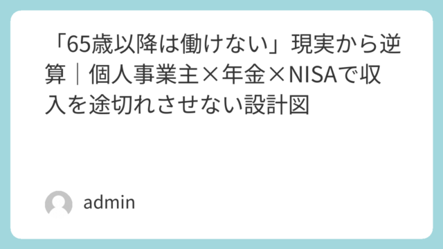 セカンドライフ設計 「65歳以降は働けない」現実から逆算|個人事業主×年金×NISAで収入を途切れさせない設計図