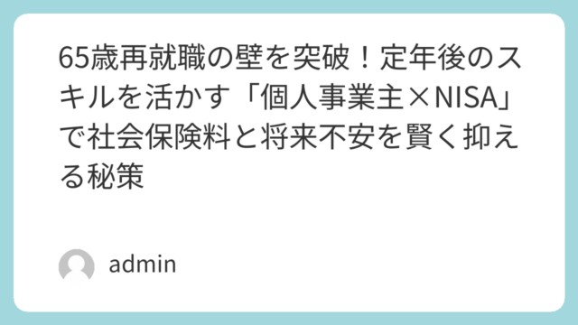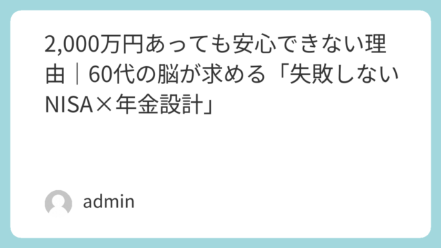 老後資金2,000万円あっても安心できない理由とは?社会保険料の増加や再就職の壁を踏まえ、60代が失敗しないNISA×年金設計の考え方を分かりやすく解説します。