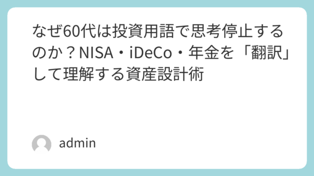 60歳からの資産形成事例 2,000万円あっても安心できない理由|60代の脳が求める「失敗しないNISA×年金設計」