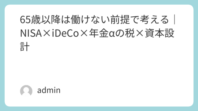 セカンドライフ設計 65歳以降は働けない前提で考える|NISA×iDeCo×年金αの税×資本設計