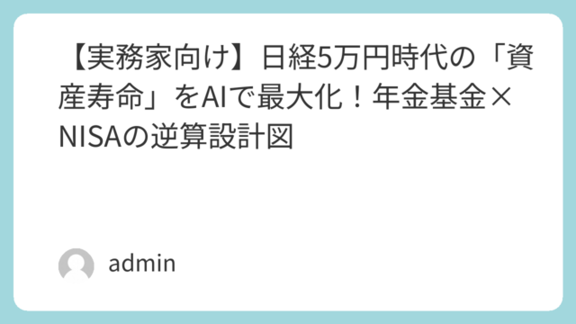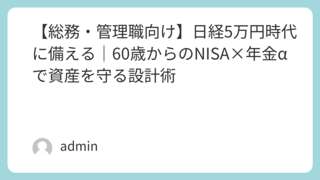 セカンドライフと資金計画 【総務・管理職向け】日経5万円時代に備える|60歳からのNISA×年金αで資産を守る設計術