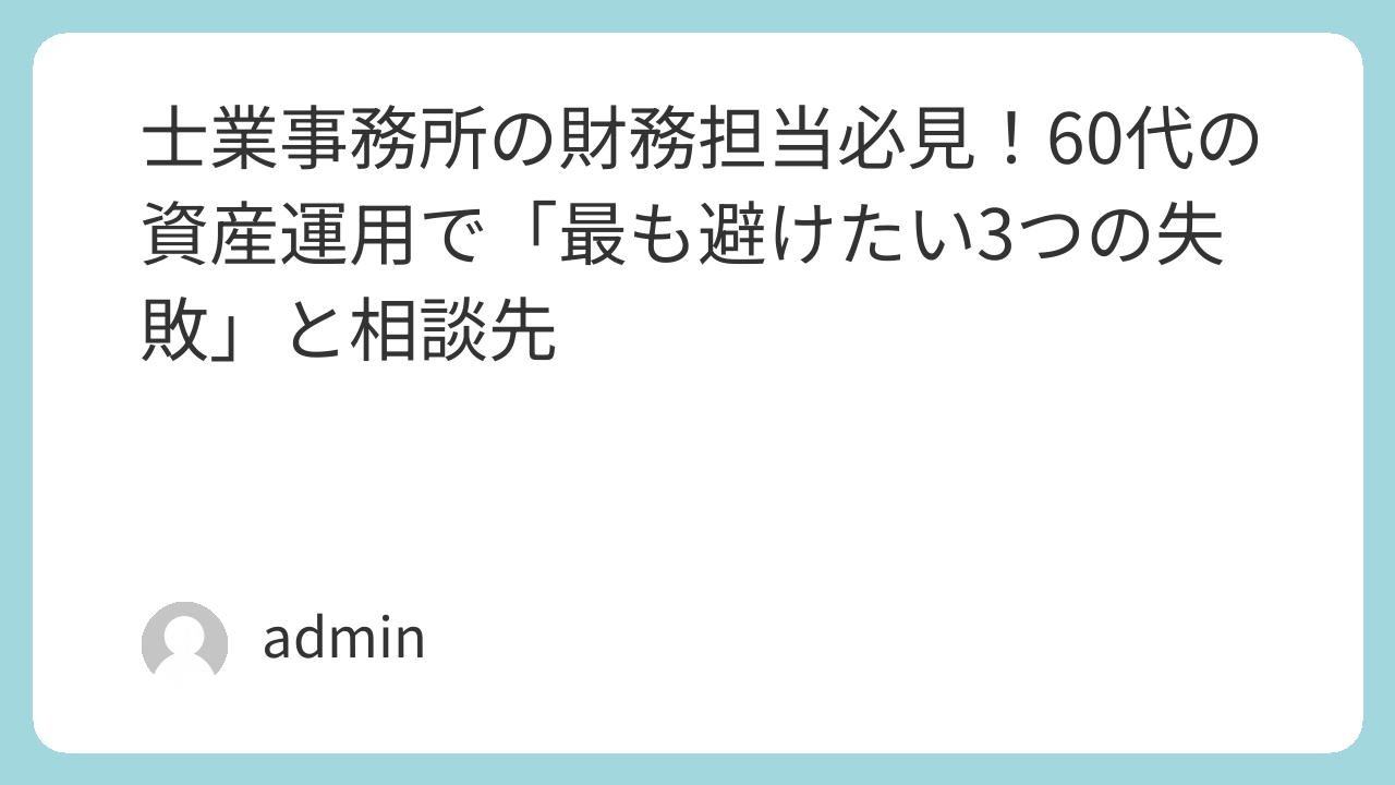 士業事務所の財務担当必見!60代の資産運用で「最も避けたい3つの失敗」と相談先