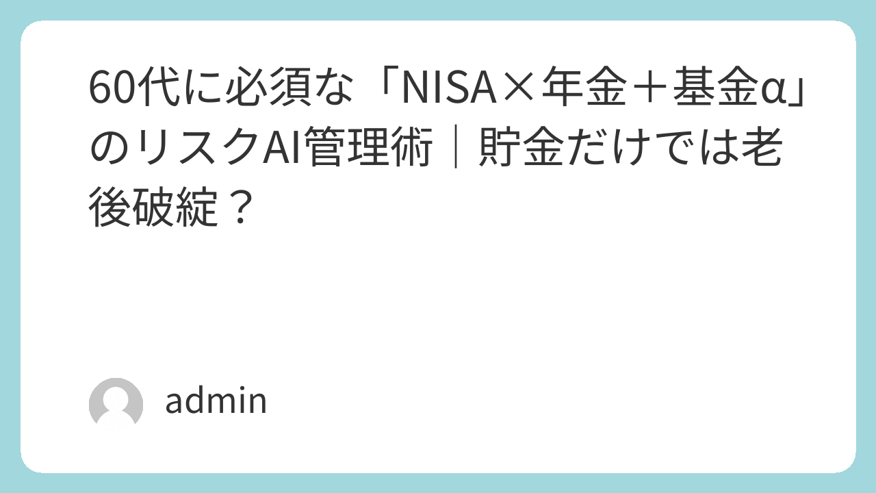 60代に必須な「NISA×年金+基金α」のリスクAI管理術|貯金だけでは老後破綻?