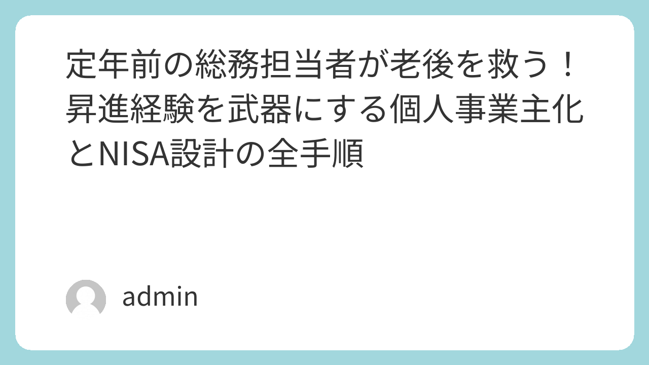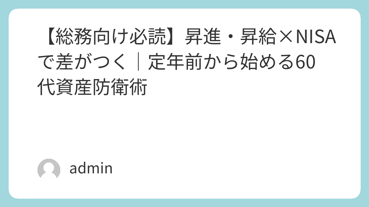 【総務向け必読】昇進・昇給×NISAで差がつく|定年前から始める60代資産防衛術