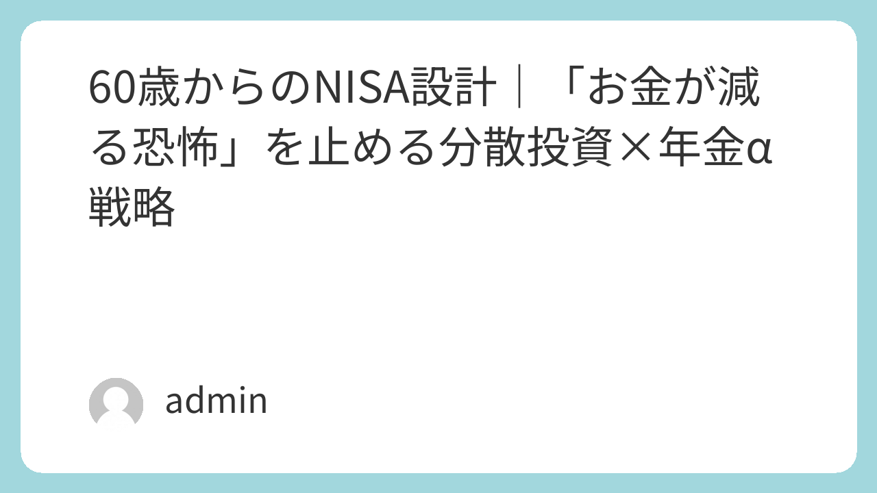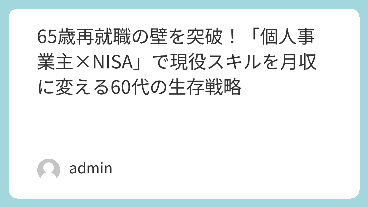 「個人事業主×NISA」で現役スキルを月収に変える60代の生存戦略