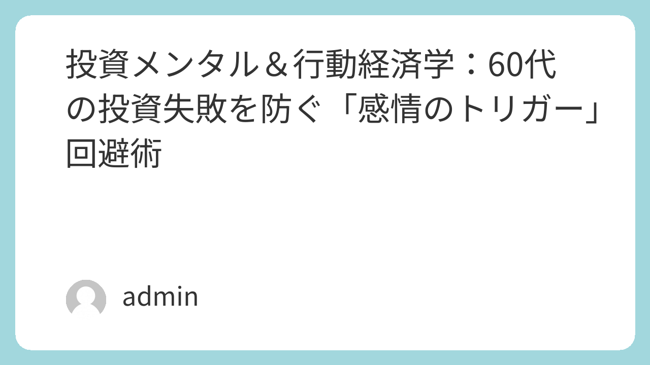 日経5万円時代、株価の乱高下は避けられません。60代の投資家の失敗の約9割は、手法ではなく**「感情」**が原因です。本記事では、行動経済学に基づき、含み損への恐怖や高値掴みの誘惑といった**「感情のトリガー」**を回避し、NISA運用を成功させるための具体的なメンタル戦略を解説します。