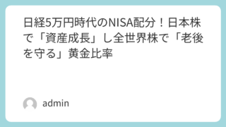 日本に住み、日本円で生活する私たちにとって、日本株は最強の「育ての資産」です。日経5万円時代は、企業の稼ぐ力が強まっている証。この波に乗ることで、国内の物価上昇から自分の資産を守り、育てる力を得ます。