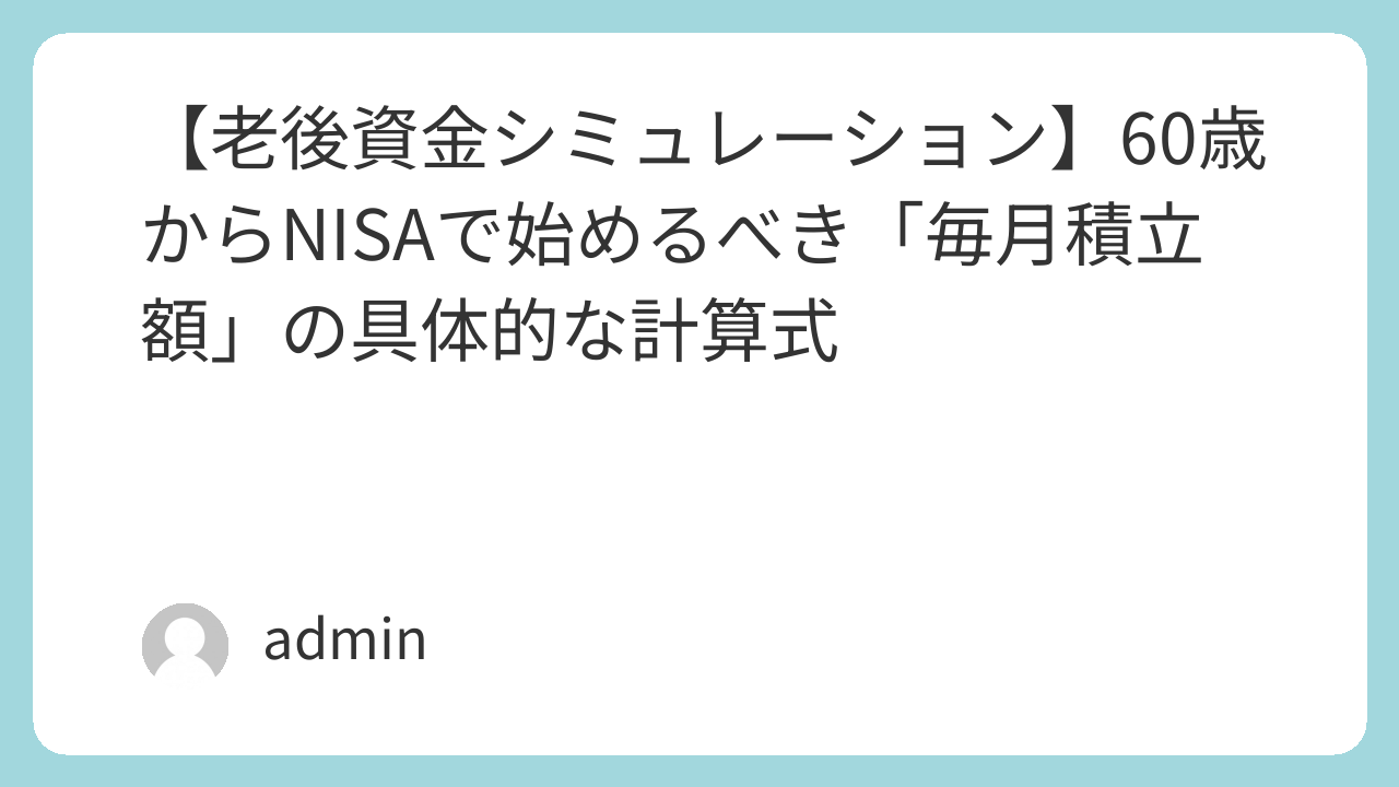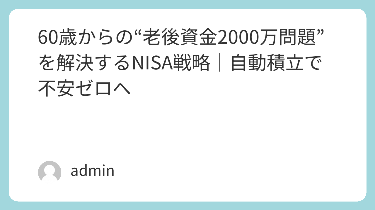 60歳からの“老後資金2000万問題”を解決するNISA戦略|自動積立で不安ゼロへ