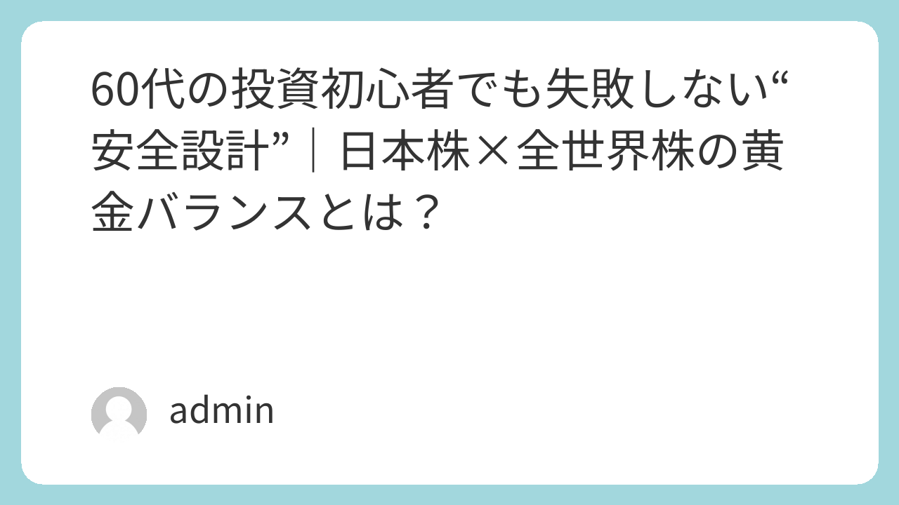 60代の投資初心者でも失敗しない“安全設計”|日本株×全世界株の黄金バランスとは?