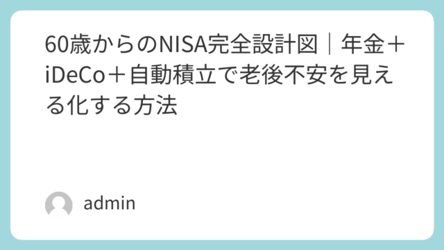 60歳からの年金・NISA・iDeCoを組み合わせた資産設計図を解説。自動積立で老後資金を見える化し、不安を安心に変える方法を紹介。